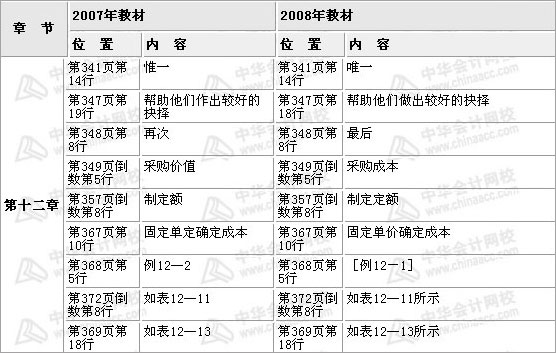 CPA《财务成本管理》07年08年教材对比(第十二章)