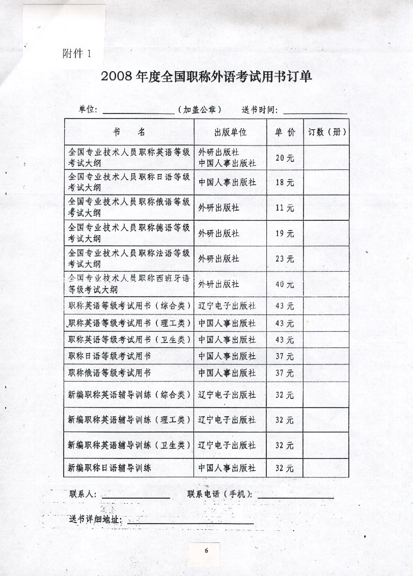 各考区的考试工作主管部门试卷预订单务必于2008年1月15日前上报省人事考试中心。