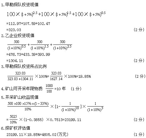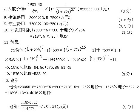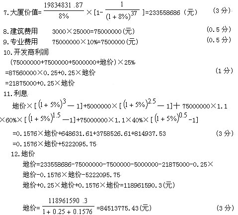 13.评估值=(273.60+269.71+281.85)÷3=275.05(万元) (1分)