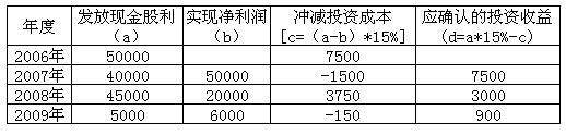 应确认的投资收益=45000×15%-3750=3000(元)