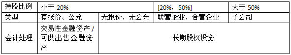 其中,主要是对被投资单位不具有共同控制或重大影响的股权投资,也就是一般来讲持股比例小于20%的股权投资,其实要区分是否有报价两种情况看待,若有报价,则作为金融资产核算,若无报价,则作为长期股权投资核算(08年教材91页第(4)点)。