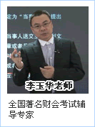 老师介绍:李玉华 全国著名财会考试辅导专家,集注册会计师、注册税务师、注册资产评估师、经济师4证于一身。从事相关考前辅导多年,具有极为雄厚的理论功底及实战经验,李老师具有深厚的理论功底及实战经验,授课针对性强,重点、难点把握精准,教学方法新颖独特,讲课风趣幽默,能让人在轻松的状态下高效率的学习。