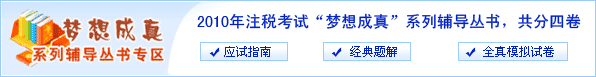 | ◇ 编辑推荐 ·2010年注税学习规划表(财会+三税) ·视频:2010年注税各科目新教材变化及复习建议 ·2010年注册税务师考试学习进度表 ·2010年注册税务师考试大纲汇总 ·2010年注税教材及“梦想成真”辅导书上市热销! |