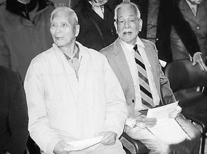 10月20日,加拿大政府在温哥华举行“人头税”象征性赔偿支票递交仪式。图为99岁的关祥国(右)和97岁的孙庆焜老人拿到赔偿支票时显得情绪激动。