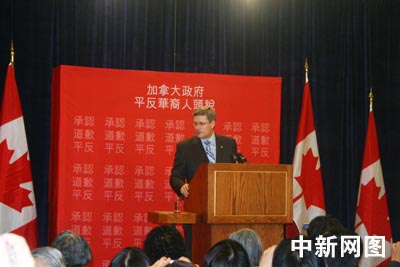 资料图片:渥太华当地时间2006年6月22日下午3时,加拿大总理斯蒂芬·哈珀在加议会发表正式声明,代表政府就“人头税”问题向全加华人道歉。