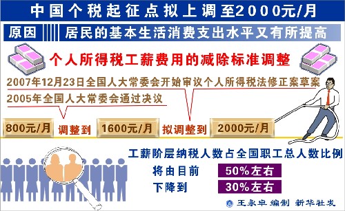 图表:中国个税起征点拟上调至2000元/月 新花社发