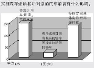 45%的读者表示燃油税实施后,油耗将成为影响购车的主要因素(见图五)。大部分读者表示会延缓自己的购车计划,或者等待方案具体实施后再作决定买什么样的车型(见图六)。消费者购车心理的变化势必影响到汽车市场和汽车产业的变化。对此,业内人士又有何看法呢?