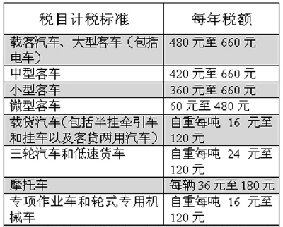 与原车船使用税相比,新车船税在税额标准方面进行了适当调整,在保持原车船使用税税额幅度下限的同时,对上限提高了1倍左右。如,载客汽车的上限由原来的320元提高到660元,载货汽车的上限由60元提高到120元。这样,为各地结合本地情况合理确定税额标准留下空间。