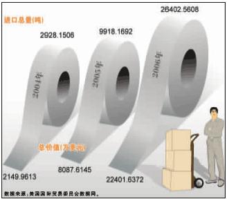 2004年至2006年美国进口中国铜版纸数据。图/CFP