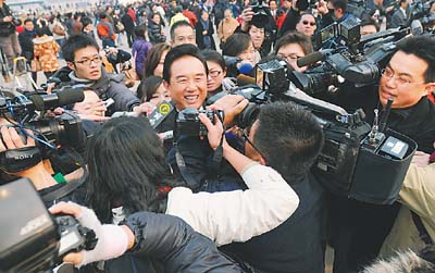 3月3日,全国政协常委、海协会长陈云林在人民大会堂前向记者介绍,去年两岸交流取得巨大成就。