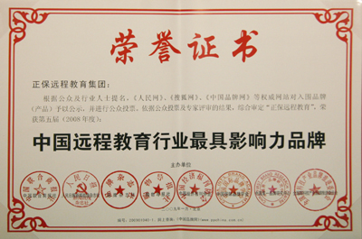 2009年1月11日,第五届(2008)“中国品牌影响力高峰论坛”年会在北京人民大会堂隆重召开。正保远程教育(CDEL)董事长、总裁兼CEO朱正东当选“改革开放30年中国教育行业十大杰出企业家”,正保集团荣获“中国远程教育行业最具影响力品牌”。