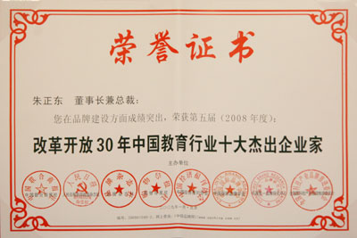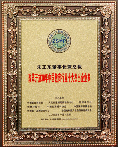 正保教育总裁朱正东当选“改革开放30年中国教育行业十大杰出企业家”