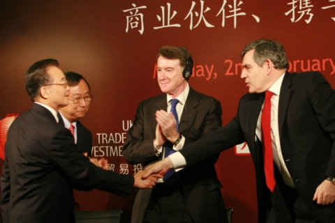 2月2日上午,中英工商峰会在伦敦国际董事协会成功举行。温家宝总理与英国首相布朗共同出席了峰会开幕式,并分别进行了主旨演讲。同时参会的还有,英国贸易投资总署首席执行官安德鲁·凯恩爵士、英中贸易协会主席白乐威爵士、中国财政部副部长李勇先生、100多名中国企业家代表和来自英国工商界的几十位知名企业家代表。