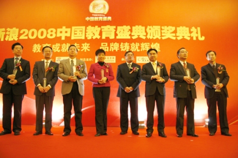 2008年度中国十大教育人物获奖者合影 正保远程教育总裁朱正东(右三)
