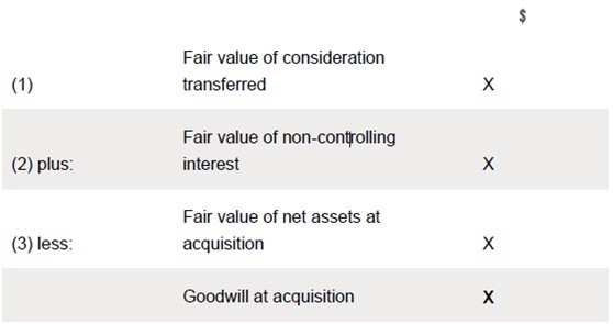 Under this syllabus, only the full goodwill method is examinable and is calculated as: