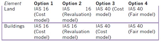 Option 4: Both land and buildings elements are measured at fair value and presented under Investment property in the statement of financial position. No depreciation is required for the land element and buildings element.
