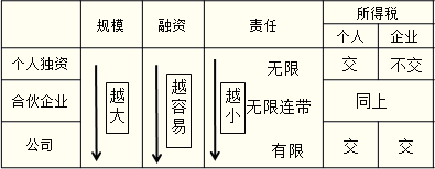 2.各种企业组织形式的优劣(规模、融资、责任、纳税)