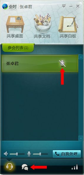 3、为了不影响会议语音质量,有麦克风者请为自己静音;如您需要提出问题或与主持人交流,可以点击如图所示聊天键,在聊天框中输入内容。