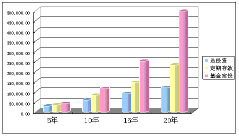 基金定投的最大好处在于分批进场,分散风险。自去年四季度以来,部分基金一个月跌了20%已经让投资者明显觉察到基金投资的风险,基金定投却能摊薄成本,风险自然变小。比如说,2007年基金普遍“丰收”,但这样的年景不可能年年都有,有些年基金会赔钱。有了长期定投计划,能让自己获得中国经济高速发展的长期收益。海外实证研究显示,每次都在市场最高点买进,与每次都在最低点买进相比,长期下来,两者的报酬率相差不到10%,定投的时间复利效果分散了股市多变、基金净值起伏的短期风险。