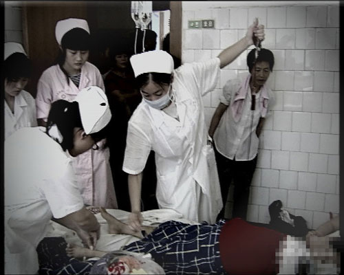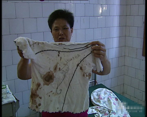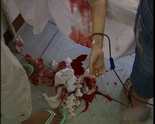 于是他们迅速拨打了120,同时打电话给在北京打工的小慧的母亲陈许春。从电视里面看到,在医院里也聚集了医院工作人员和病人差不多一千多人,小丁香病床前的地上流下了大摊的血迹和擦满血的卫生纸。(见图片)触目惊心