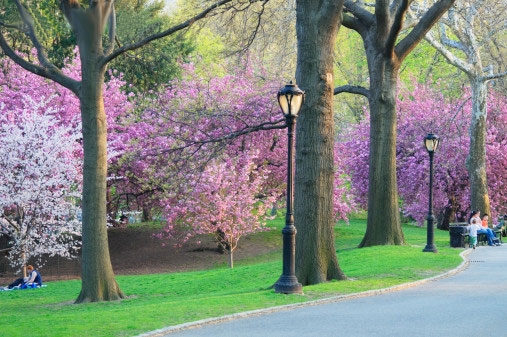 有人出游、度假,赏春;