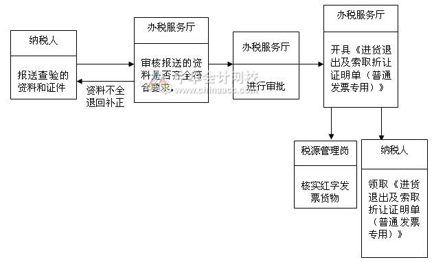 主管税务机关审核纳税人报送需查验的资料是否齐全。对符合条件的,并报经相关审批岗审批后,当日开具《进货退出及索取折让证明单(普通发票专用)》,交纳税人。