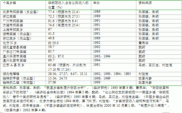[6]以下是一些研究者搜集的个案乡镇的非规范性收入的数据资料,可供参考(注意:他们的统计口径并非完全一致):