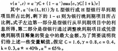H型银行的,能筹集到0.65×1.28+0.35max[4,0.98/r]的资金。可以看出对于任何的利率水平,r<2.05,该银行都能偿付所有的存款。他们通过直接(从早到期项目贷款中的收益)和间接(由有闲置资金的企业家进行再投资)的方法产生自身的流动性来维持运营,而无须调整资本结构,提前收回贷款。