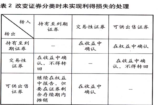 FASB和IASB在金融工具改变分类时,对未实现持有利得和损失处理都有严格规定,其目的是为了限制企业利润操纵的空间。比如,持有至到期投资在到期前出售超过一定比例的,其余部分也要转为可供出售类,其目的是使该类投资中的升值部分和贬值部分得到相同的处理,防止只确认升值部分,不确认贬值部分。