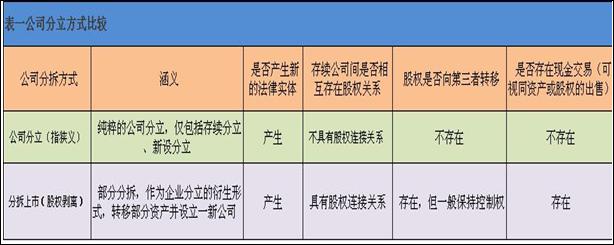 公司分立是现代公司开展资产重组,调整股本、资产、组织结构,降低投资风险,提高公司盈利能力的重要经营战略之一。管理效率假说表明,在规模扩张和多元化经营的过程中存在着一定的负协同效应,存在着一个报酬率递减的临界点。公司分立是解决这些问题的有效途径,它在确定母公司和子公司各自比较优势的基础上,使它们更加集中于自身的优势项目,同时还具有推动相关公司完善法人治理结构、实现主业转变等优点。广义的公司分立包括公司分立(指狭义或纯粹的公司分立)与分拆上市。