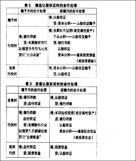 在我国股权分置过程中发行认股权证有赠送和发售两种方式,在这两种方式下对认股权证的会计处理略有不同。