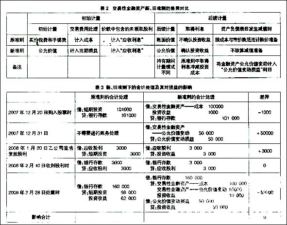 二、原准则中的短期投资与新准则中交易性金融资产会计核算的比较分析