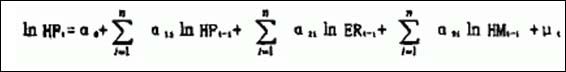 ㏑HP=5.30207-0.000286㏑ER(t-1)+0.856916㏑HP(t-1)-