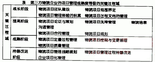 每个等级由几个关键过程域组成,这几个关键过程域共同形成一种项目管理等级水平。第三方物流企业只有完成成熟度级别所规定的关键活动,企业才能达到该成熟度级别。