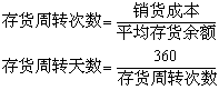 (1)存货周转率。它是衡量和评价企业购入存货、投入生产、销售收回等各环节管理状况的综合性指标。它是销货成本被平均存货所除而得到的比率,或叫存货的周转次数,用时间表示的存货周转率就是存货周转天数。其计算公式如下: