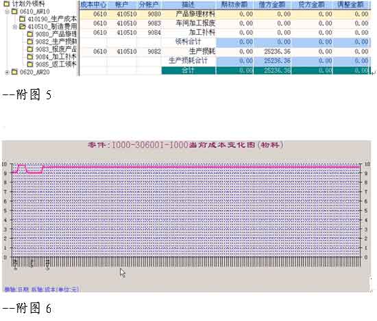 当然,上述仅仅是我们解决系统流程与财务融合过程中所遇到的几个典型事件而已。系统还在继续运行,新的问题还会产生,但只要我们有了克难制胜的心态,一切问题都会迎刃而解。不仅如此,凭借ERP系统这个平台,我们的财务核算工作也逐步由过去的事后控制变为事中控制和事前控制,在IT等部门的协助下,我们相继开发出了费用控制表、零件成本变化曲线图等模块(见附图5、6),为公司的管理上台阶提供了有力的依据。