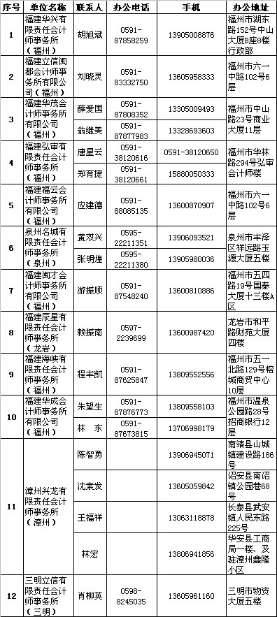 经中介机构申请并符合《高新技术企业认定管理工作指引》条件的福建省高新技术企业认定专项审计工作会计师事务所名单(第一批)(Excel表格见附件)