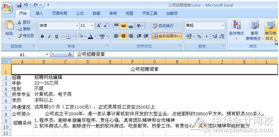 1. 选中单元格区域“A1:L1”,切换到【开始】选项卡中,单击【样式】组中的【单元格样式】按钮。如下图: