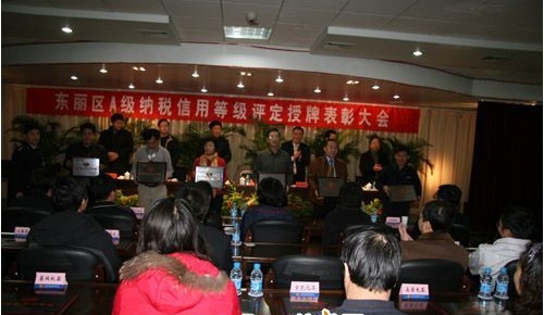 近日,天津市东丽区国税局召开2008年度天津市A级纳税信用企业表彰大会,天津分公司与另外37家企业获首批“天津市A级纳税信用企业”称号。天津市东丽区国家税务局根据《中华人民共和国税收征收管理法》和《国家税务总局纳税信用等级评定管理试行办法》的规定,按照统一的内容、标准、方法和程序经过认真初评,严格审核评议,从近万家企业中产生了首批38家获此殊荣的企业。A级纳税信用企业是国家税务总局授予的纳税信用等级中最高的级别。被评为A级纳税信用企业,可享受多项优惠政策和服务。