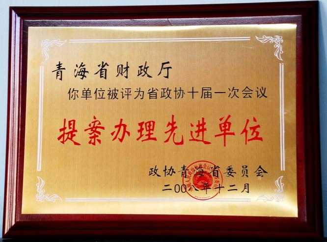 2008年,省财政厅继续做好政协委员提案办理工作,对省政协十届一次会议委员的63件提案进行认真办理,受到政协委员的好评,被省政协评为2008年度提案办理先进单位。