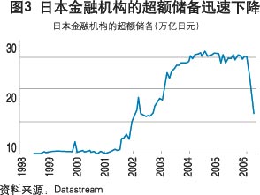 日本央行在3月9日宣布结束2002年以来执行的“数量放松”,重新将货币政策的工具从数量工具(货币供应量)转为价格工具(利率)。虽然BoJ还没有正式开始升息,但是随着超额储备的迅速下降,以调期利率为代表的市场利率已经开始迅速蹿升,从过去三年的平均千分之一上升到五月份的千分之五。借入日元的套利交易虽然仍然有利可图,但是利润空间已经大为减少。