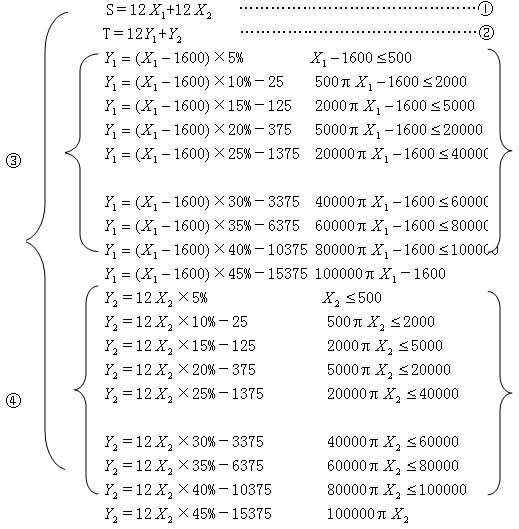 前面的纳税筹划是针对年终奖而言的。下面,笔者将运用数学方法进行包括月薪和年终奖在内的整体年薪筹划。过程如下: