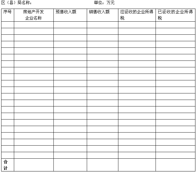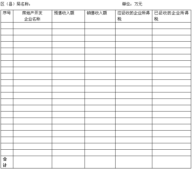 二、请各局将本辖区内房地产开发企业有关情况填写《房地产开发企业2004年度有关情况统计表》(详见附表1)、《房地产开发企业2005年上半年有关情况统计表》(详见附表2),并于2005年10月底前报市局所得税处。
