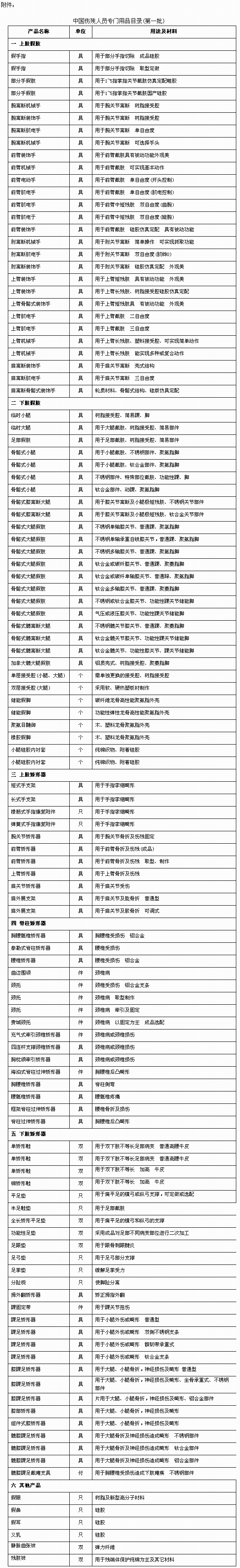 附件:中国伤残人员专门用品目录(第一批)