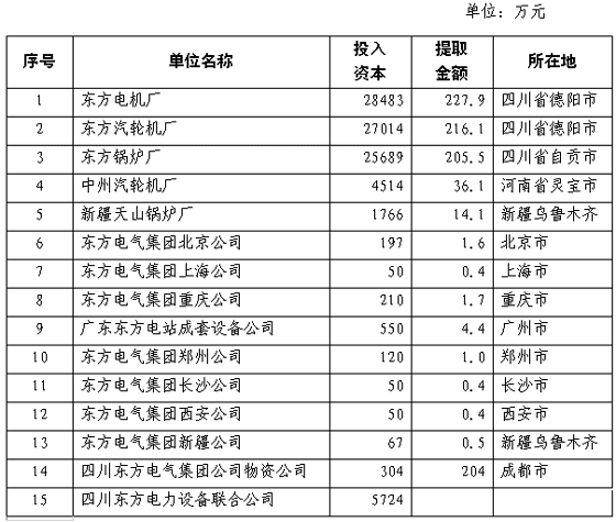 附件:中国东方电气集团公司2004年度所属成员企业总机构管理费扣除标准