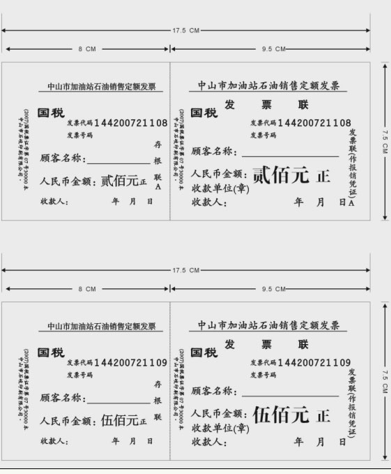你局《关于申请增印中山市加油站石油销售定额发票的请示》(中山国税发〔2007〕26号)悉。为加强对加油站普通发票的管理,便于纳税人填开及使用普通发票,同意你局增加印制200元和500元两种面额版的《中山市加油站石油销售定额发票》,有关发票的印制问题按照《转发国家税务总局关于加强普通发票集中印制管理的通知》(粤国税函〔2007〕138号)的规定执行。