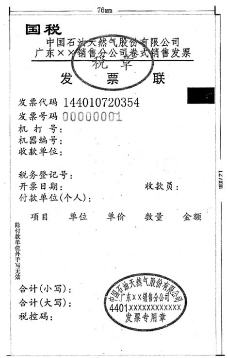 中国石油天然气股份有限公司广东销售分公司(以下简称中石油广东销售分公司)下属单位广州销售分公司加油站试点使用山东浪潮电子设备有限公司生产的税控收款机(我省国税系统税控收款机选型招标中标企业)开具发票以来,有助于企业规范发票管理、节省纳税成本,同时有利于税务机关加强统一发票的管理。为此,省局同意中石油广东销售分公司在全省范围内统一使用税控收款机开具发票,发票共两联,第一联为发票联,第二联为存根联(票样见附件)。中石油广东销售分公司下属各市分公司申请办理印有本单位名称发票的有关印制手续,按照省局《关于中国石油天然气股份有限公司广东广州销售分公司使用税控收款机打印发票的批复》(粤国税函〔2007〕192号)规定执行。