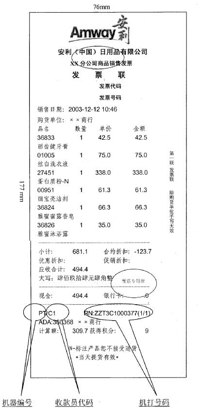 你局《关于安利(中国)日用品有限公司统一发票式样的请示》(穗国税发〔2006〕154号)收悉。现接《国家税务总局关于安利(中国)日用品有限公司印制有本单位名称发票的批复》(国税函〔2006〕934号),同意由你局按照税控收款机发票式样的要素(票样见附件)印制安利(中国)日用品有限公司(简称安利公司)冠名发票,安利公司在全国各地的分支机构均可按规定向经营地主管税务机关申请印制安利公司冠名发票。