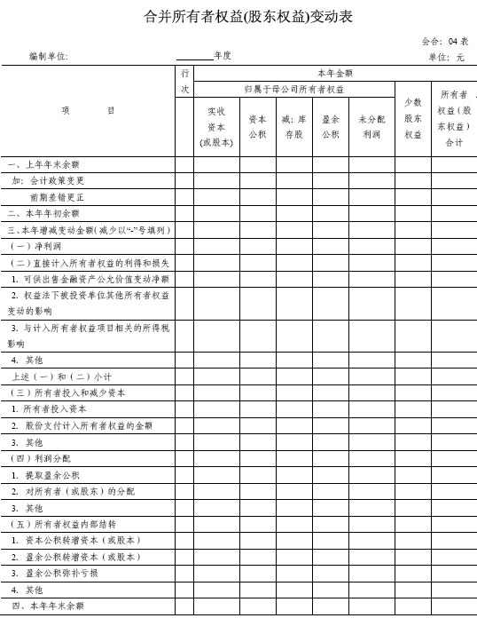 合并财务报表的格式及其中各项目,涵盖了母公司和从事各类经济业务的子公司的情况,包括一般企业和商业银行、保险公司、证券公司等。合并资产负债表、合并利润表、合并现金流量表、合并所有者权益(股东权益)变动表的格式如下: