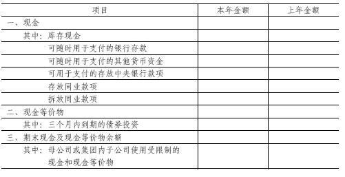 3.“现金及现金等价物净增加额”项目与现金流量表中的“现金及现金等价物净增加额”项目的金额应当相等。